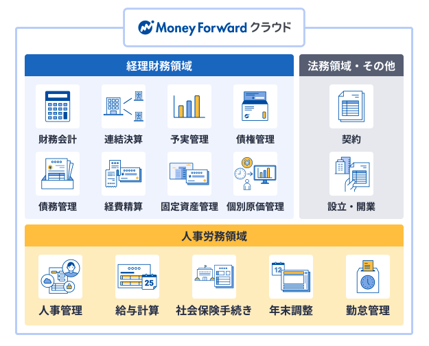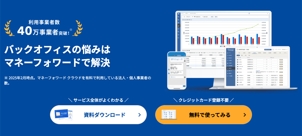 会計、請求書、給与計算、勤怠管理など幅広いバックオフィス業務を効率化できる「マネーフォワードクラウド」
